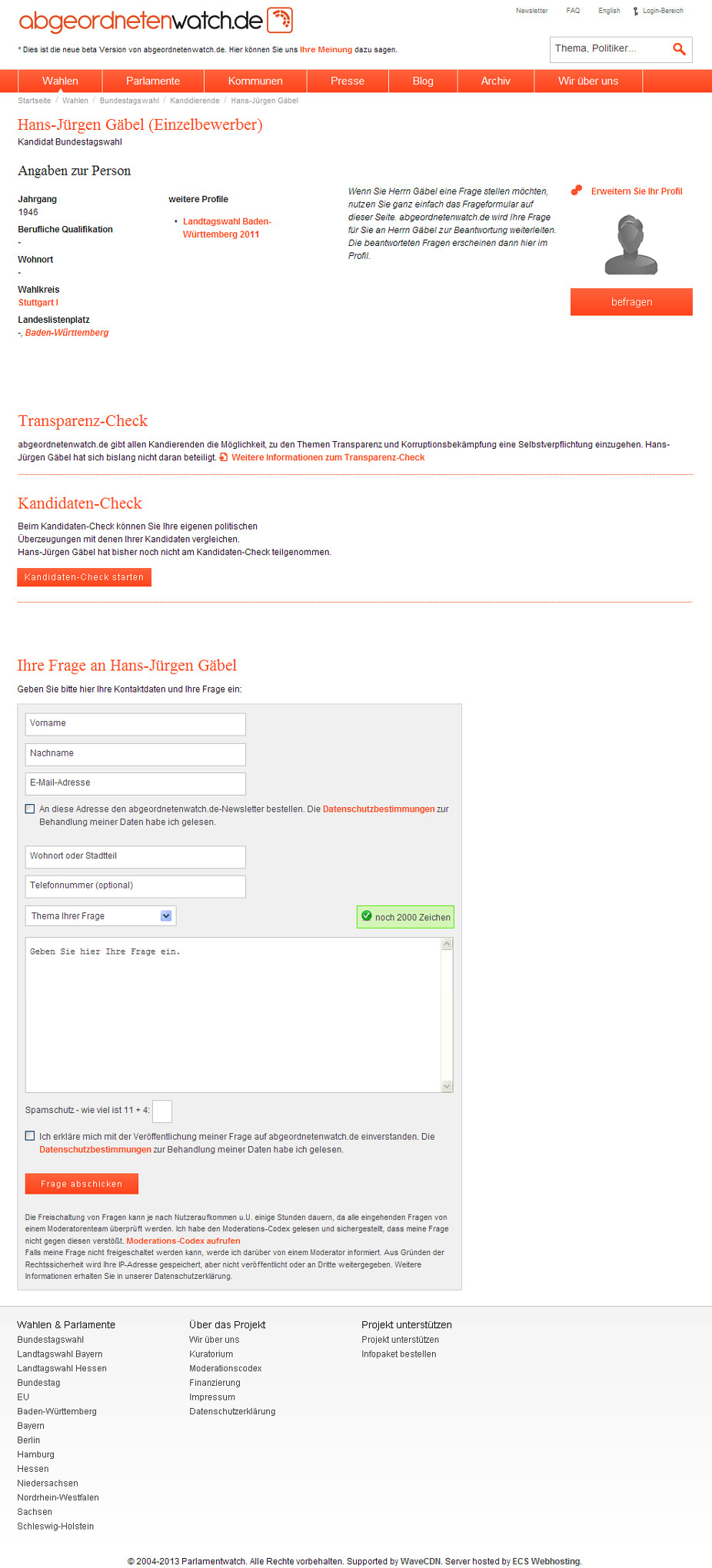 | Homepage Hans-Jürgen Gäbel   Bundestagswahl   2013 abgeordnetenwatch (II) |