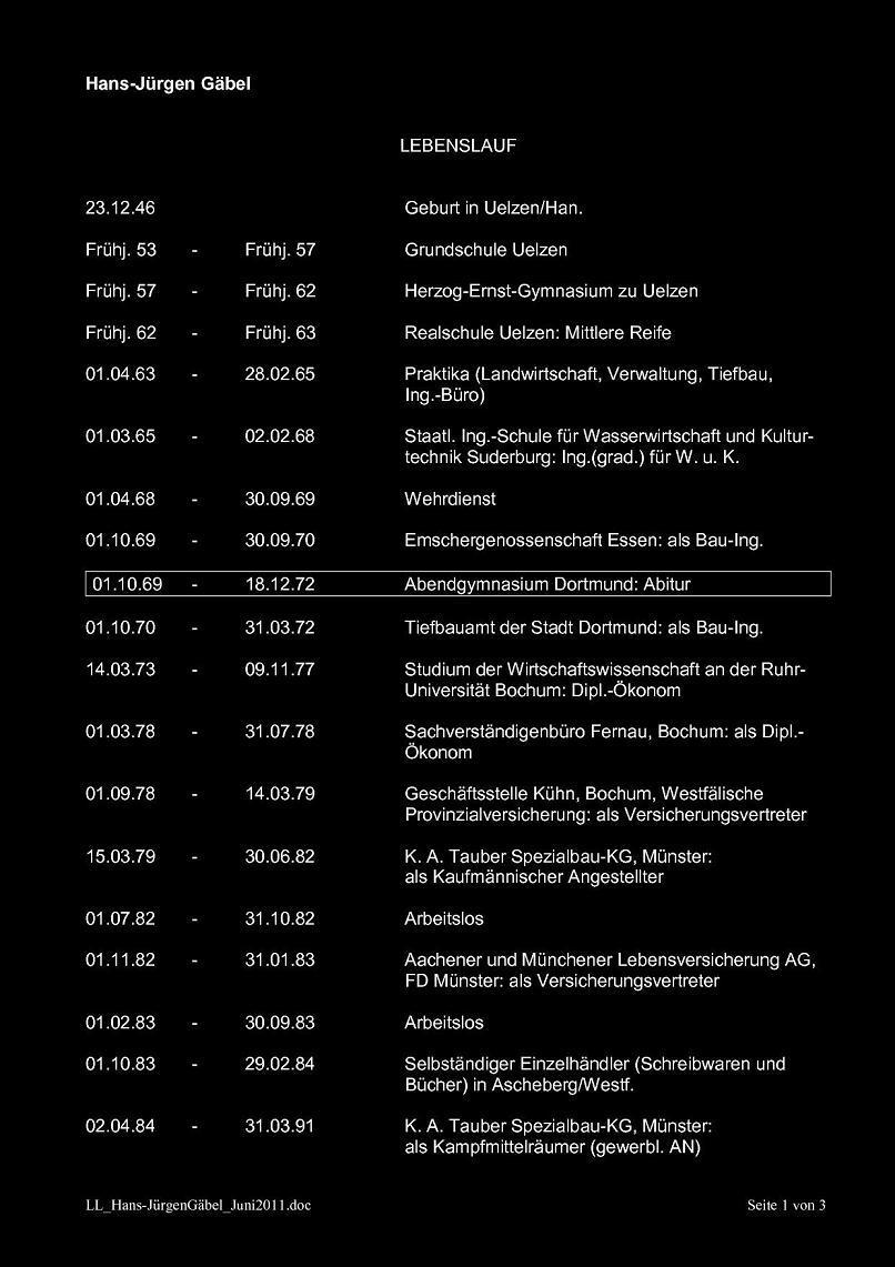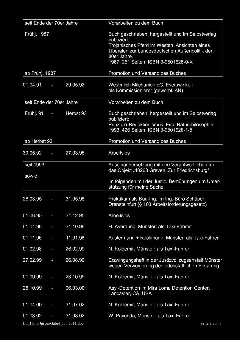 | Homepage Hans-Jürgen Gäbel  Insasse der BRD  - 1 - Lebenslauf |
