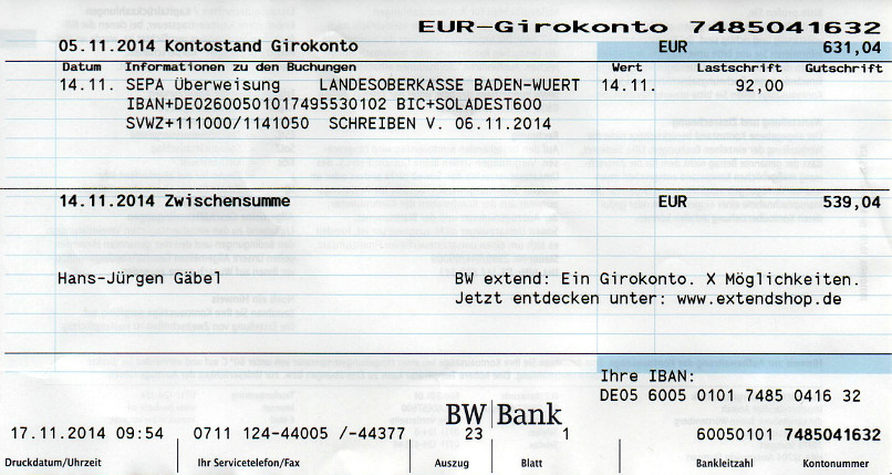 | Fortsetzung Wohngeldantrag vom 05. November 2014      Fehlender Nachweis für Wohngeldantrag vom 05. November 2014  Schreiben Wohngeldstelle Vaihingen vom 06. November 2014   Kontoauszug über Rückerstattung November-Wohngeld für Nufringer Straße  Kontoauszug über Einzug der Miete für November 2014  Schreiben EnBW vom 17. November 2014       Fortsetzung Schreiben EnBW vom 17. November 2014 Nächste Seite |