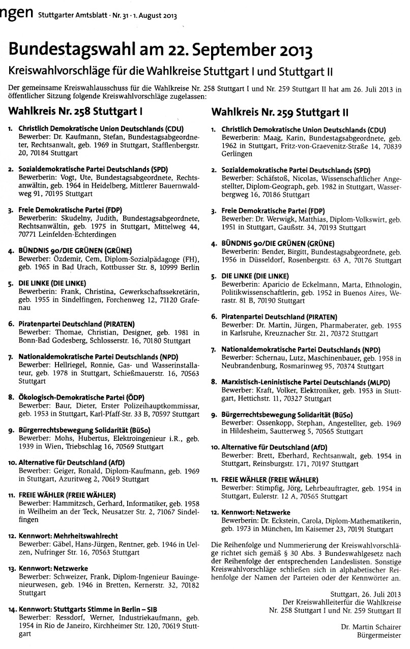 | Stuttgarter Amtsblatt vom 1. August 2013 |