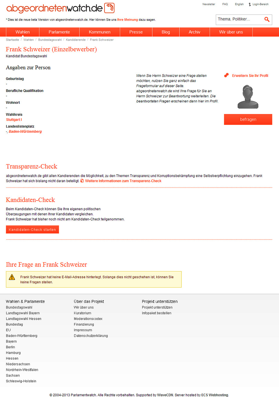 | Homepage Hans-Jürgen Gäbel  Bundestagswahl  2013 abgeordnetenwatch (I) |