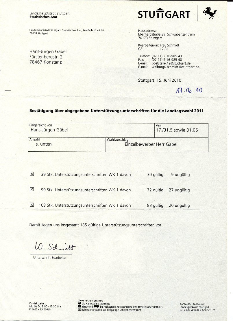 Schreiben an den SÜDKURIER vom 18. Juni 2010![]() Bestätigung des Statistischen Amtes Stuttgart vom 15. Juni 2010 ![]() |