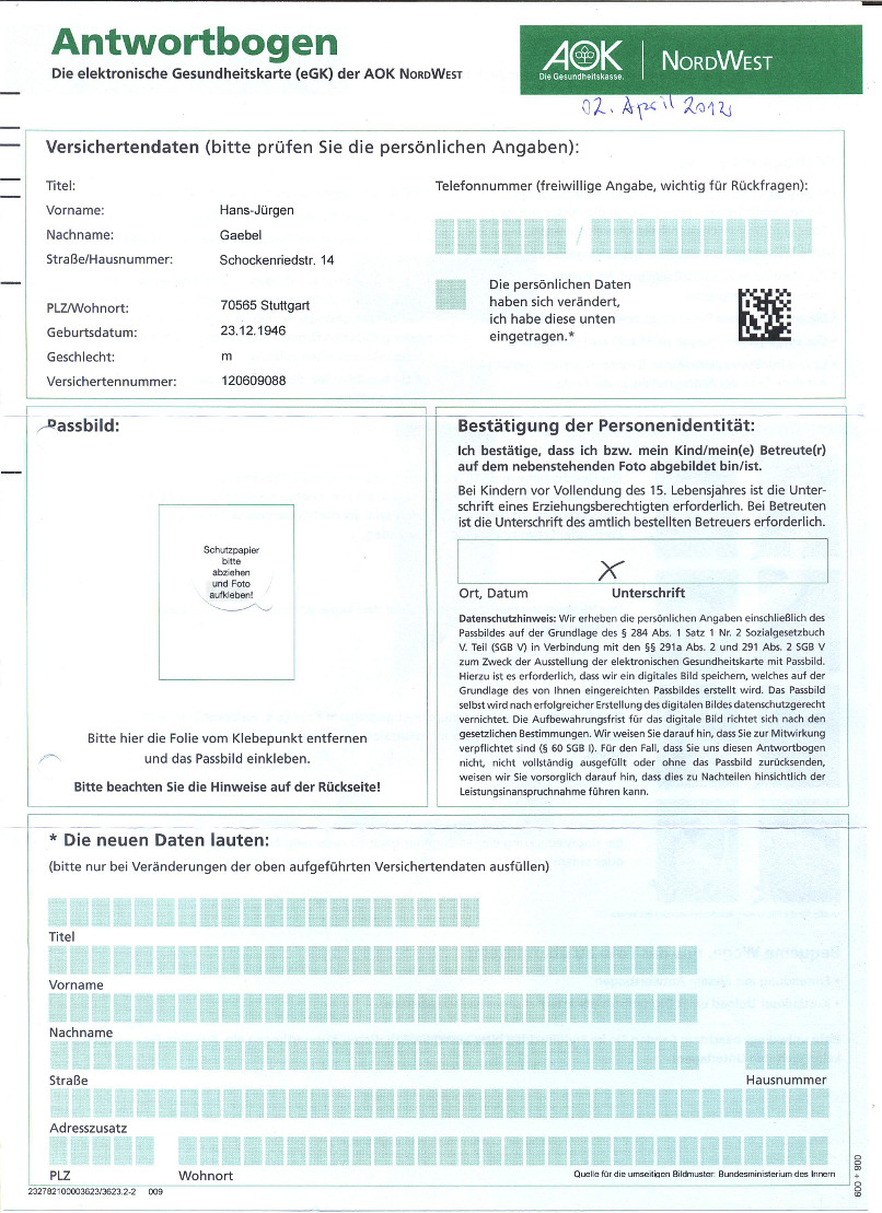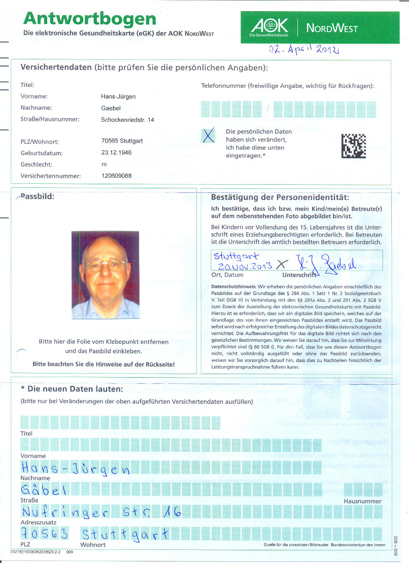 | Homepage Hans-Jürgen Gäbel  Insasse der BRD  - 3 - AOK / Rente I |