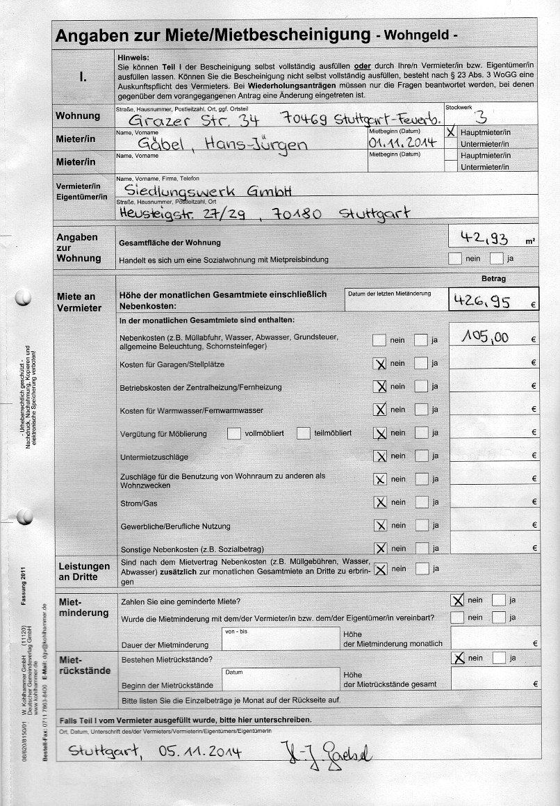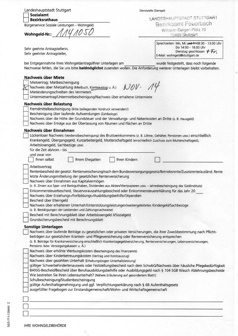 Fortsetzung Wohngeldantrag vom 05. November 2014![]() ![]() ![]() ![]() ![]() Fehlender Nachweis für Wohngeldantrag vom 05. November 2014 ![]() Schreiben Wohngeldstelle Vaihingen vom 06. November 2014 ![]() ![]() Kontoauszug über Rückerstattung November-Wohngeld für Nufringer Straße ![]() Kontoauszug über Einzug der Miete für November 2014 ![]() Schreiben EnBW vom 17. November 2014 ![]() ![]() ![]() ![]() ![]() ![]() Fortsetzung Schreiben EnBW vom 17. November 2014 Nächste Seite |