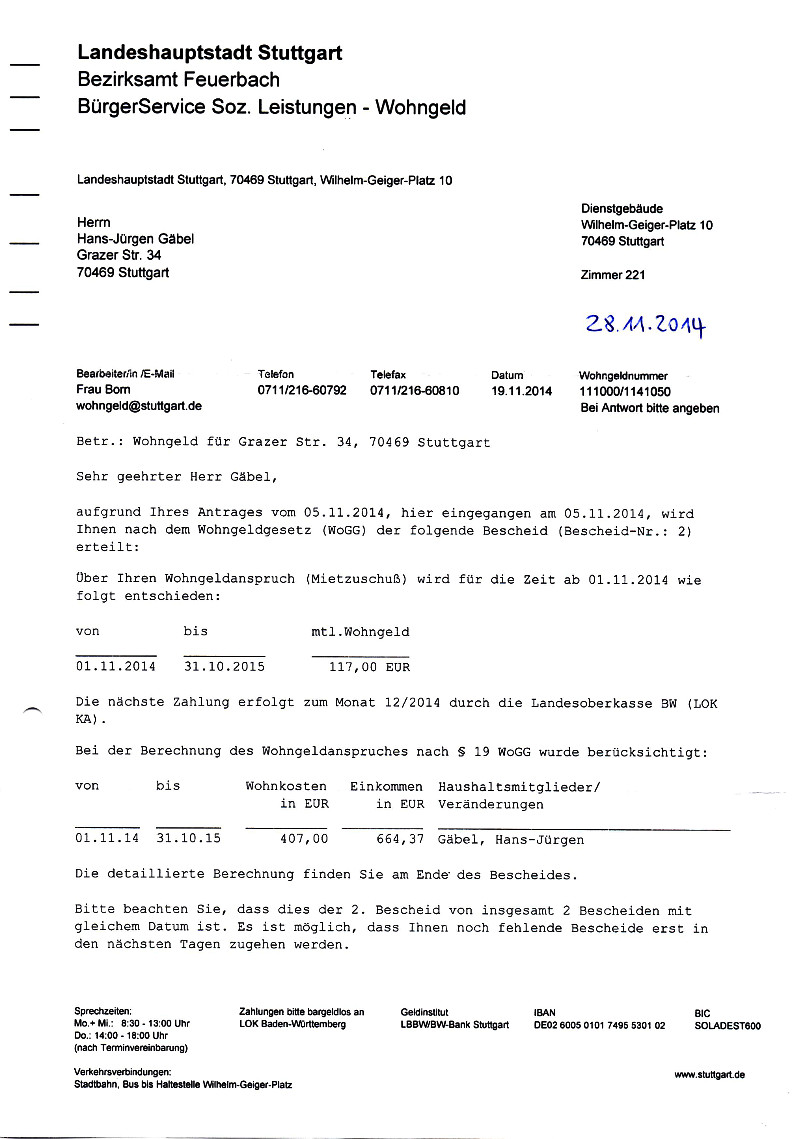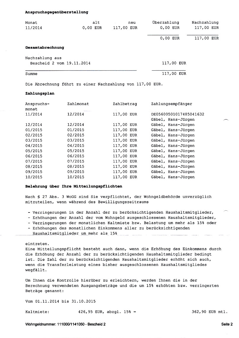 Fortsetzung Schreiben EnBW vom 17. November 2014![]() ![]() ![]() ![]() Wohngeldbescheid Nr. 1 vom 19. November 2014 ![]() ![]() ![]() Wohngeldbescheid Nr. 2 vom 19. November 2014 ![]() ![]() ![]() ![]() ![]() Bonuscard 2015 ![]() ![]() ![]() |