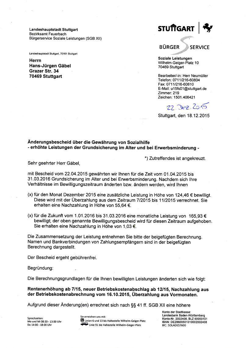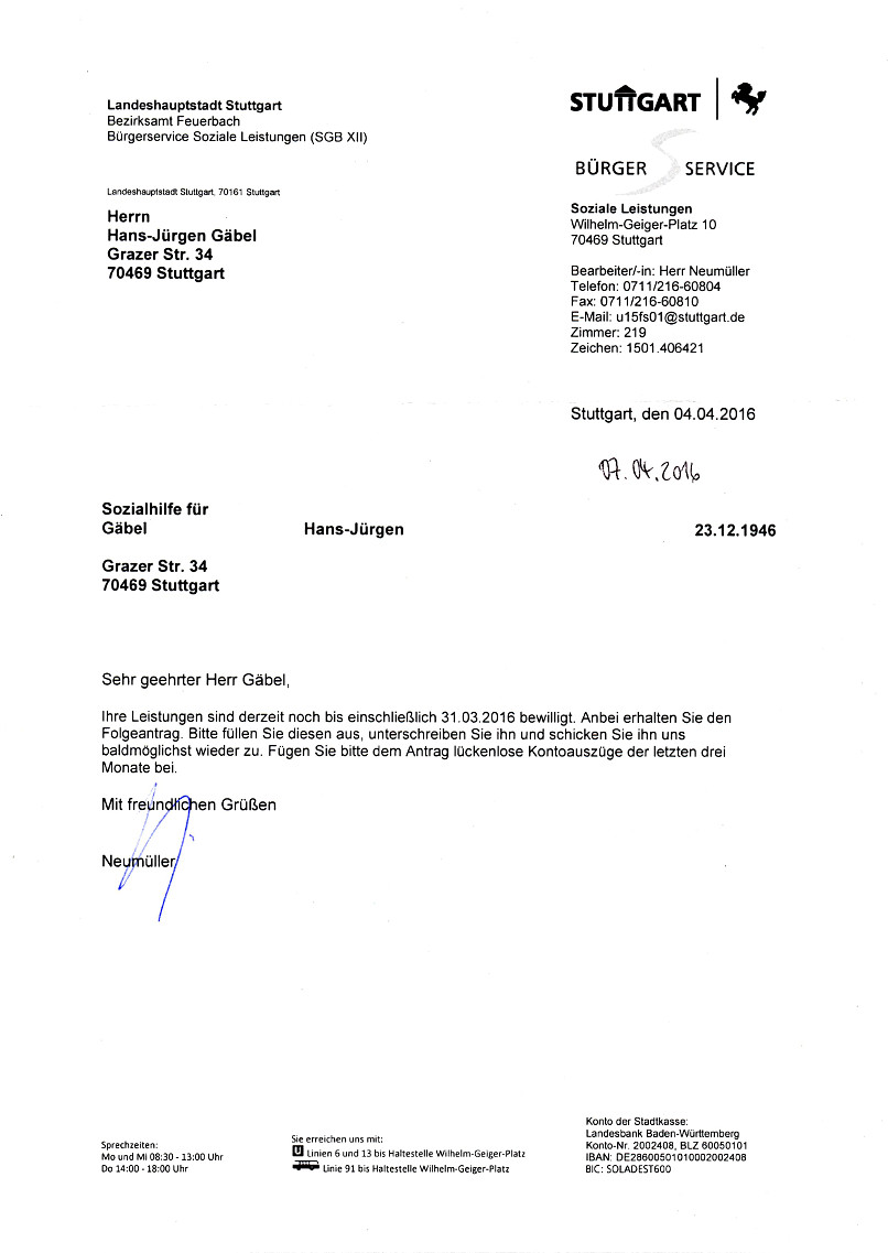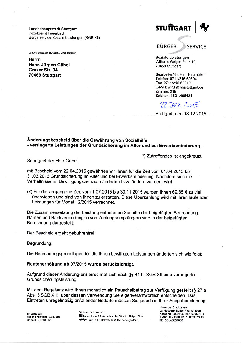 SchreibenI Bezirksamt Feuerbach vom 18. Dezember 2015 wegen Grundsicherung![]() ![]() ![]() ![]() ![]() SchreibenII Bezirksamt Feuerbach vom 18. Dezember 2015 wegen Grundsicherung ![]() ![]() ![]() ![]() Schreiben Bezirksamt Feuerbach vom 04. April 2016 wegen Folgeantrag Grundsicherung ![]() Folgeantrag für die Grundsicherung (datiert auf den 04. April 2016) ![]() Änderungsbescheid vom 12. April 2016 wegen Grundsicherung ![]() ![]() ![]() ![]() Bescheid vom 12. April 2016 wegen Grundsicherung ![]() ![]() ![]() ![]() |