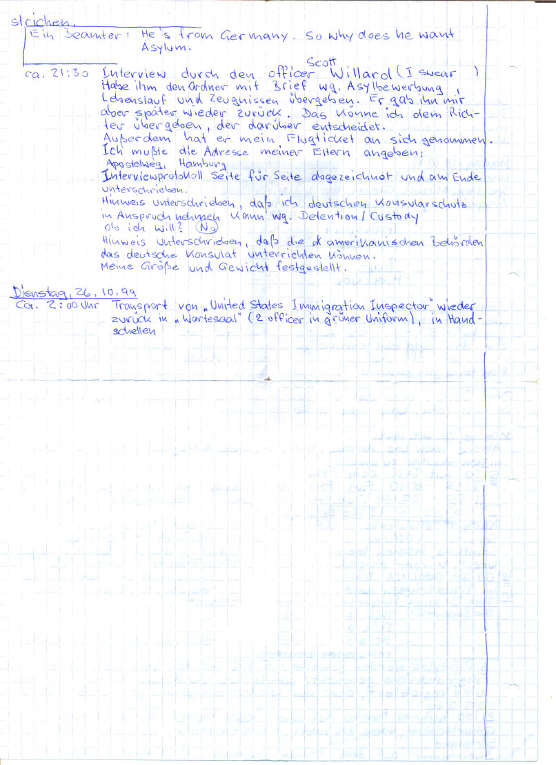 | Deutschsprachige Version meines Schreibens an das "Asylum Office", das ich zusammen mit einem umfangreichen Ordner voller Dokumente vor der Abreise verfertigt hatte. |