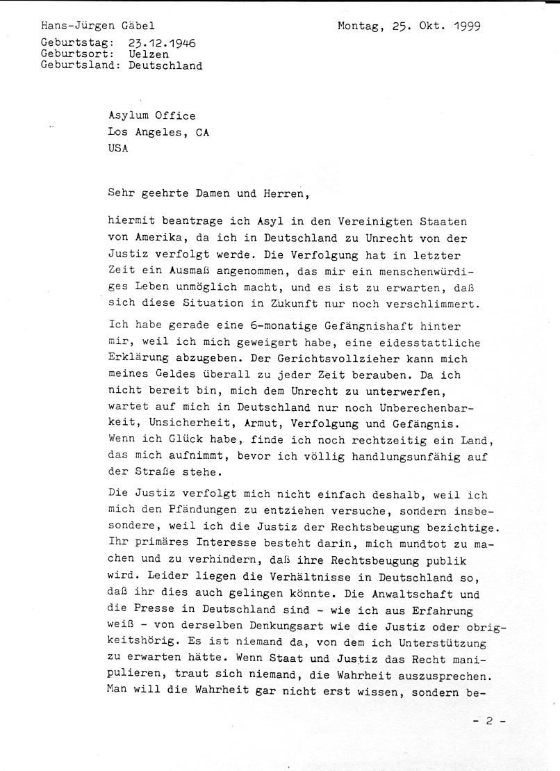 Homepage Hans-Jürgen Gäbel Asyl Phase I |