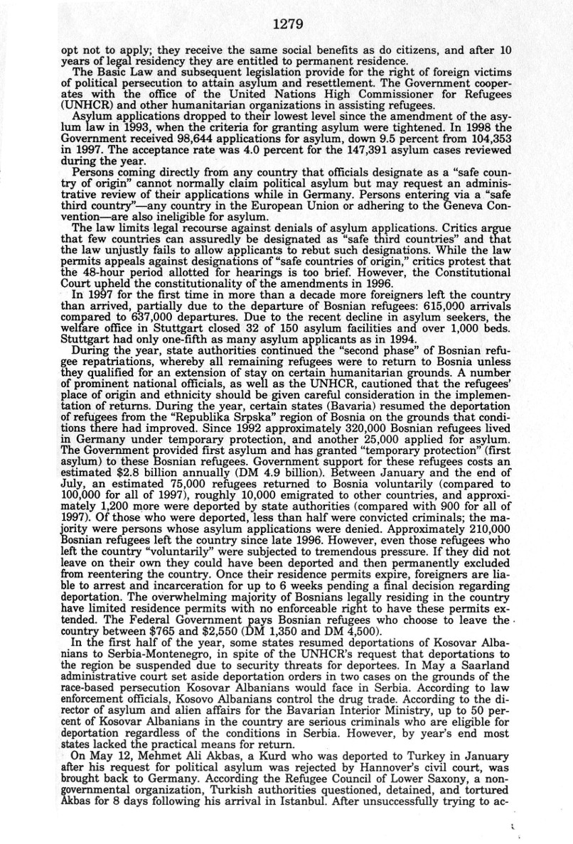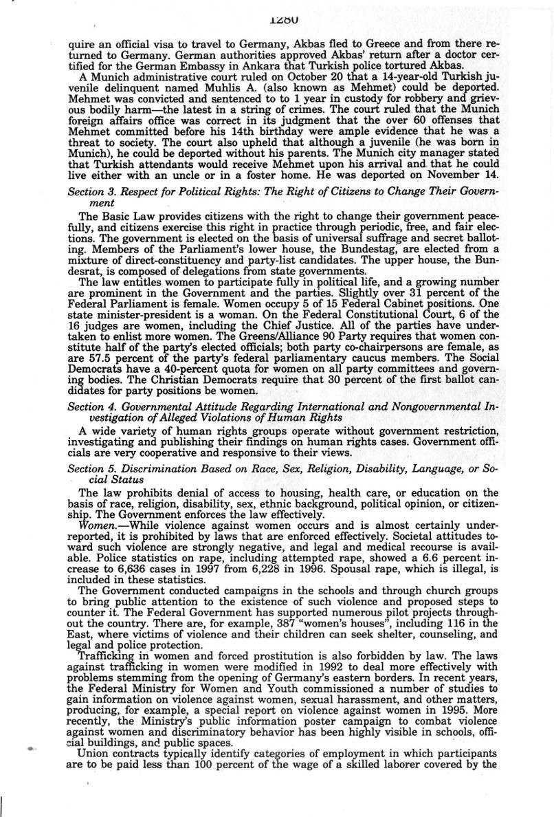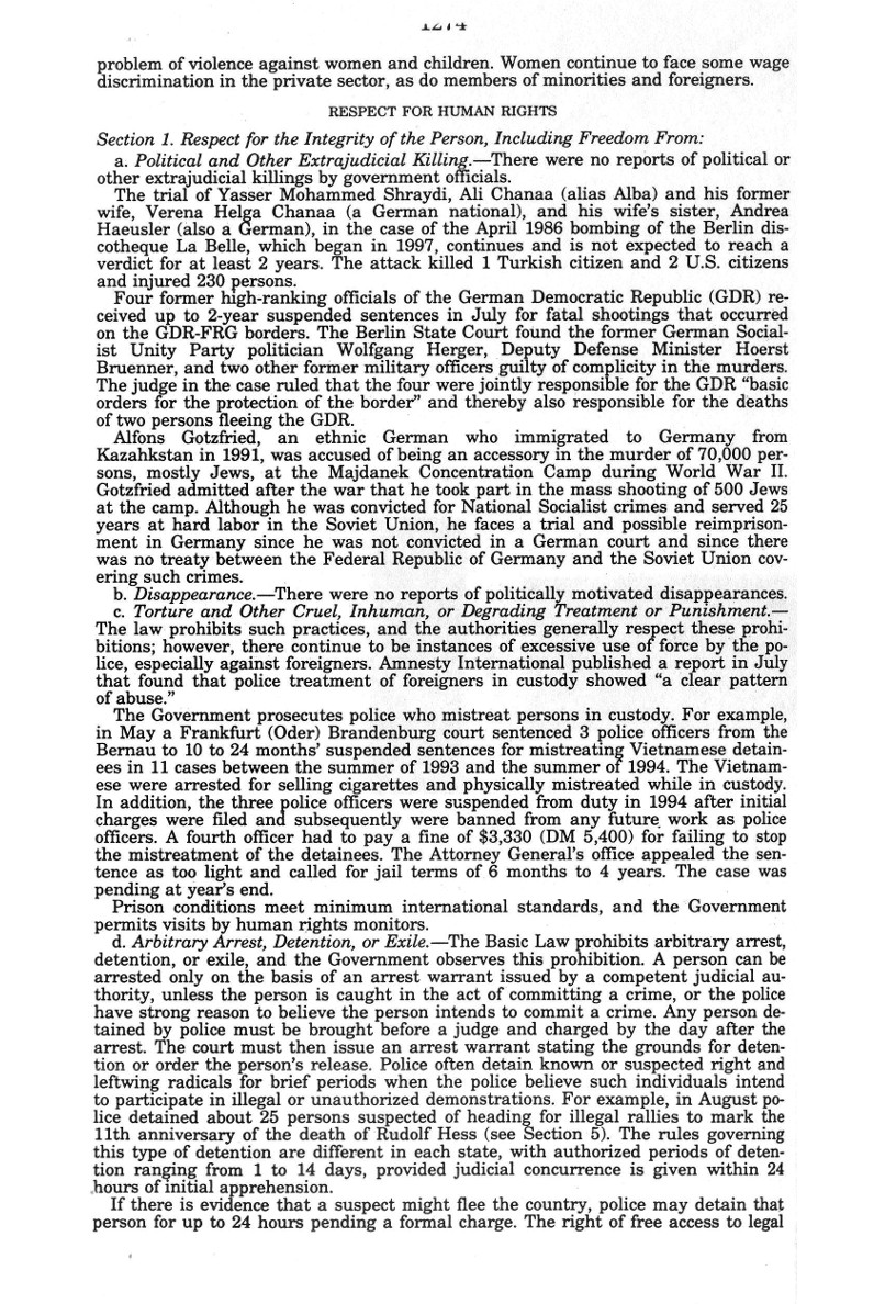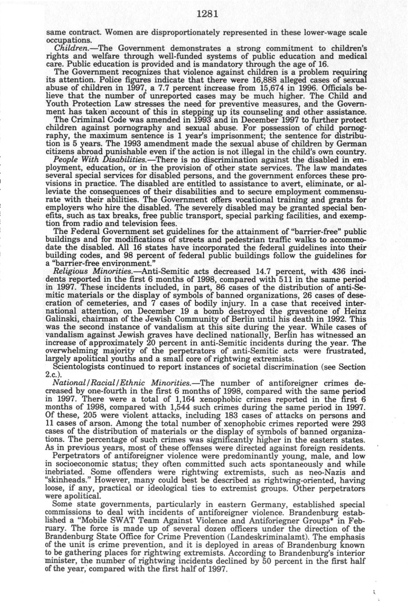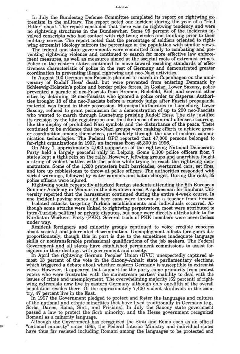 | Auszug "Country Reports on Human Rights Practices for 1998-Volume II / Germany" des Department of State |