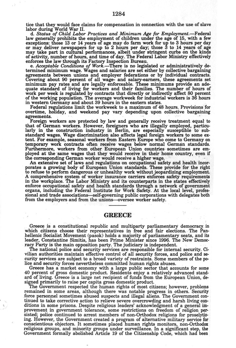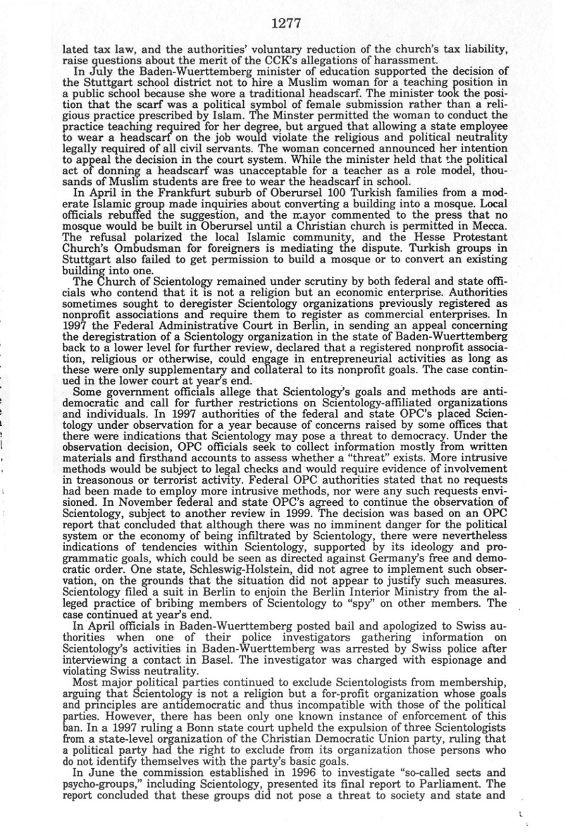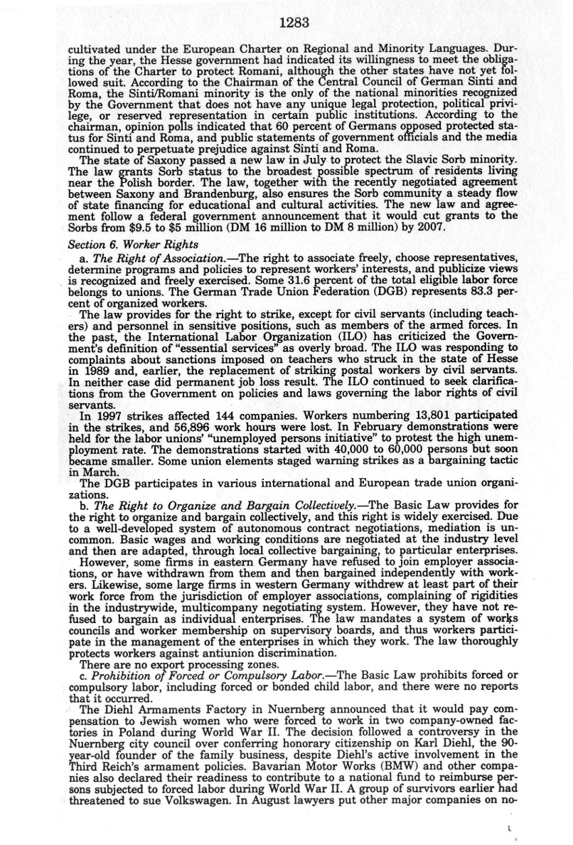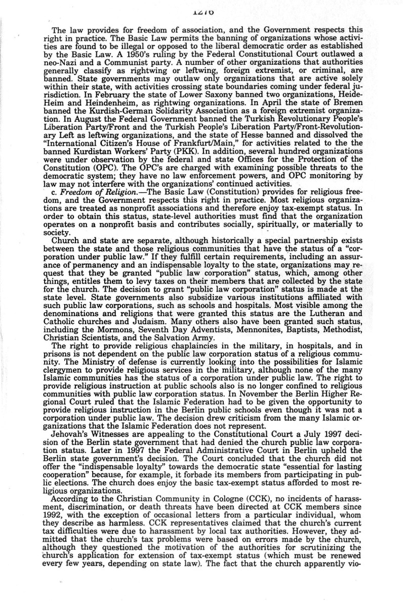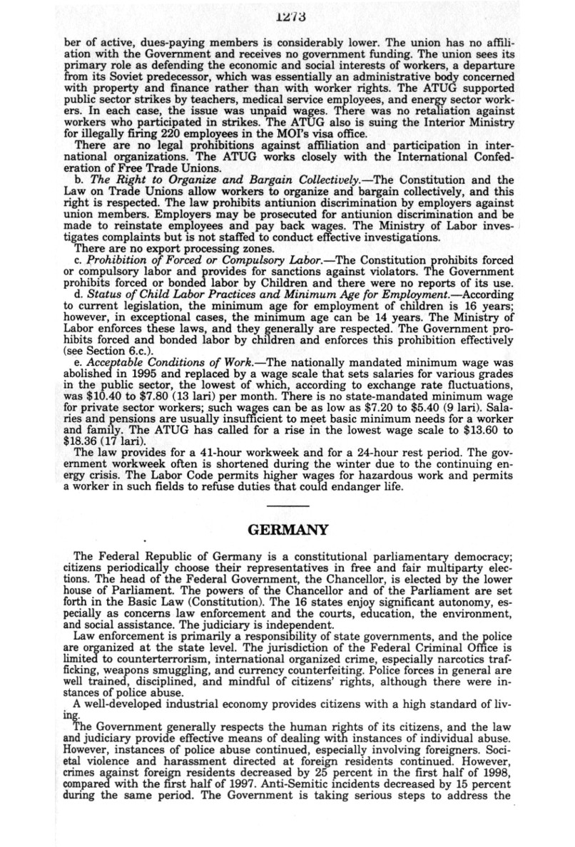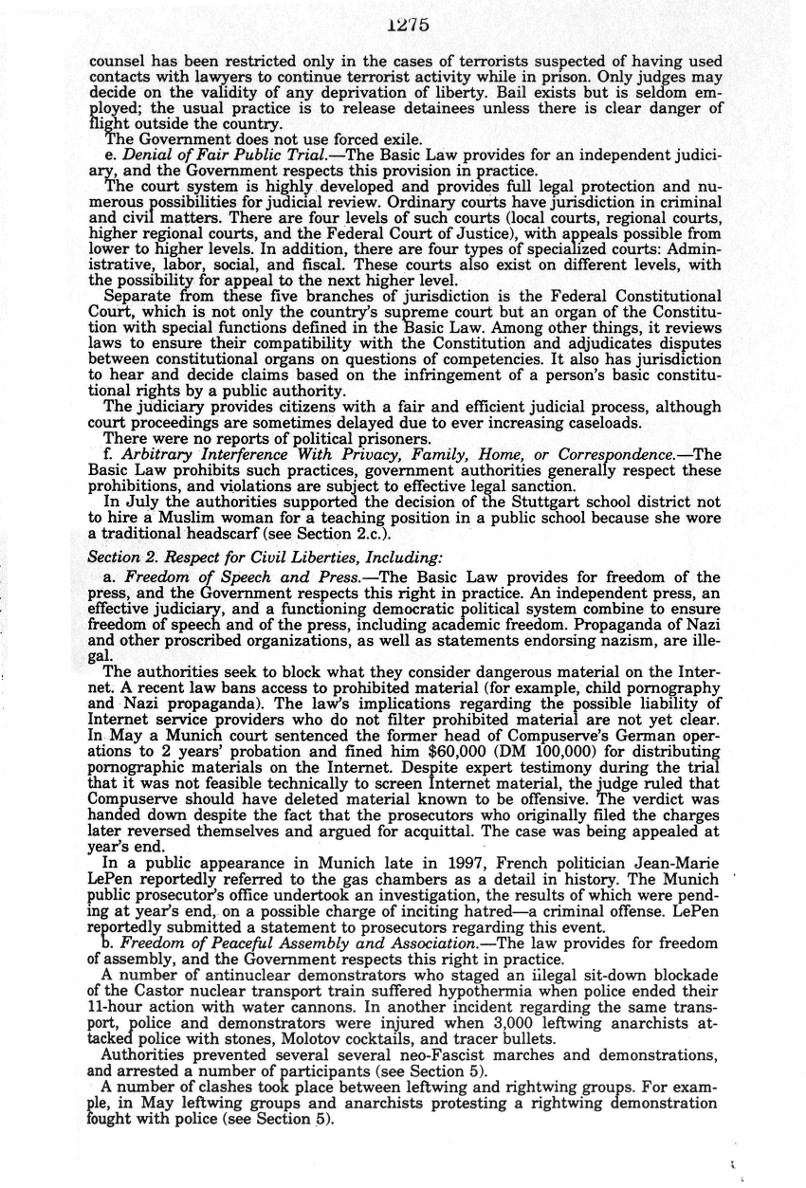 | Auszug "Country Reports on Human Rights Practices for 1998-Volume II / Germany" des Department of State |