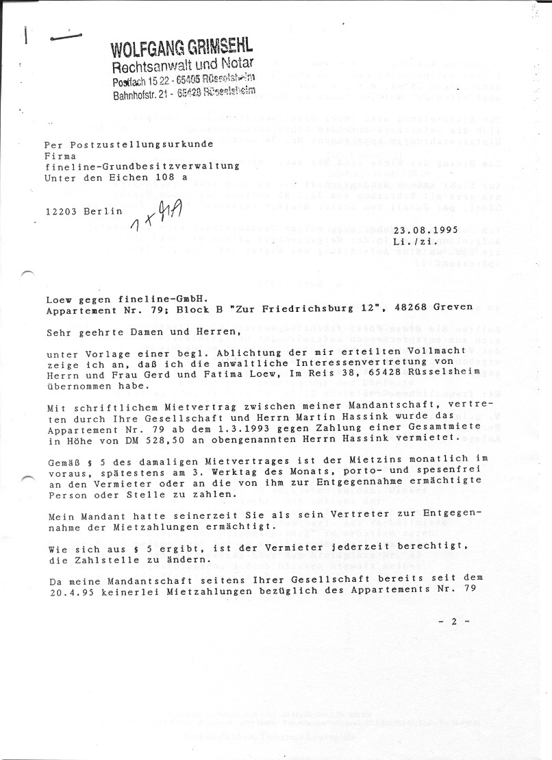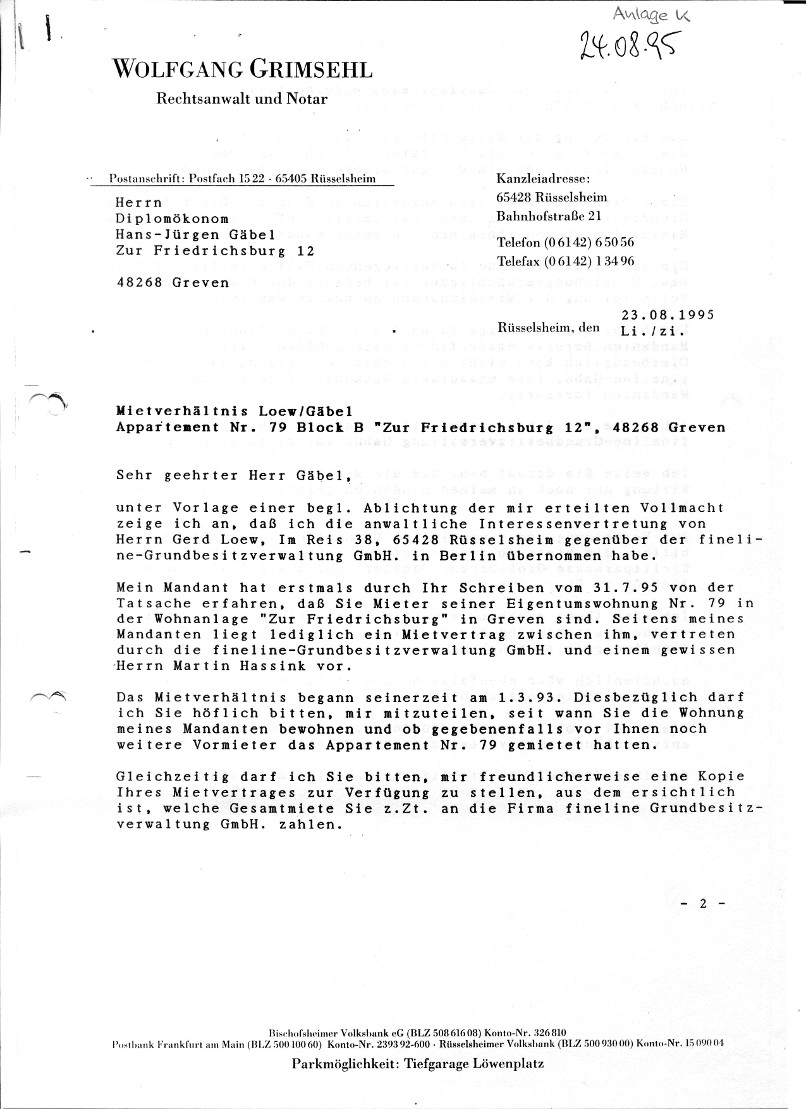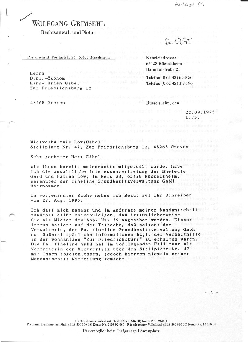 | Schreiben Grimsehl vom 22.09.1995 mit Anlage |