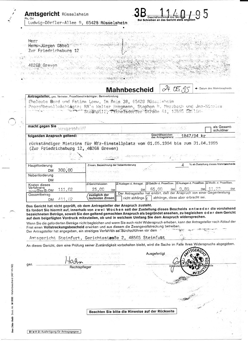 | Die Sache mit dem PKW-Einstellplatz und welche interessanten Dinge dadurch ans Licht kamen. |