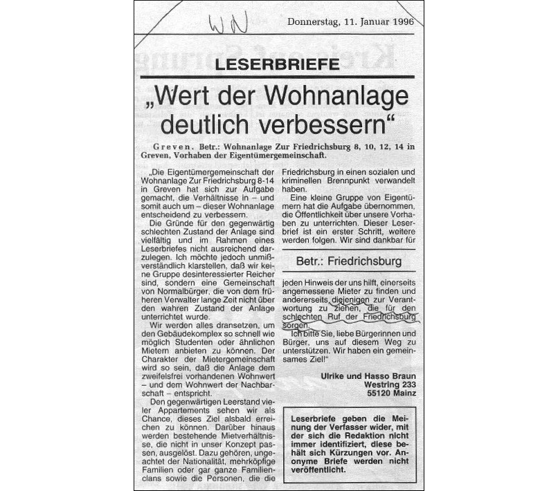 Homepage Hans-Jürgen Gäbel Die Causa "Zur Friedrichsburg" und ihre Folgen Ein paar Dokumente, die ein Licht auf das Projekt werfen |