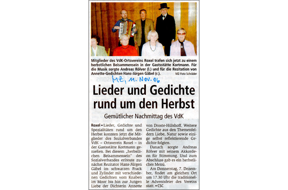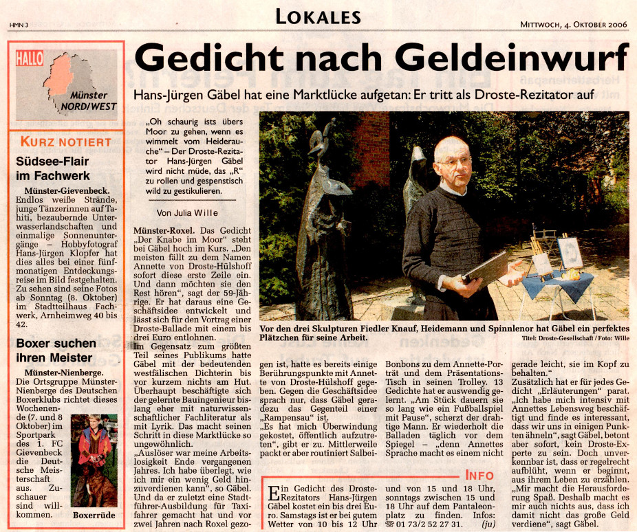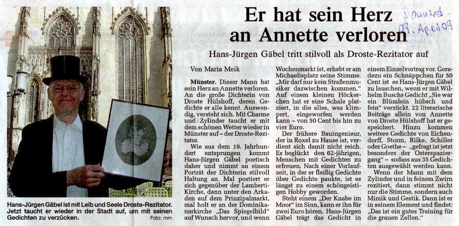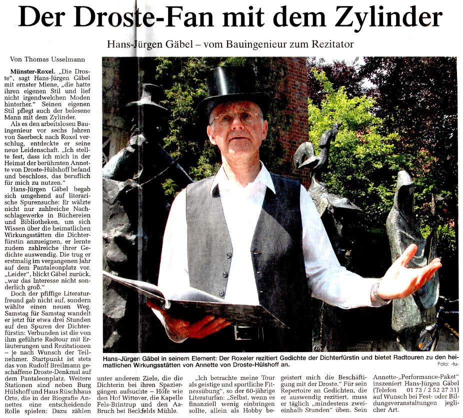 Homepage Hans-Jürgen Gäbel Rezitator Der Droste-Rezitator im Spiegel der lokalen Presse |