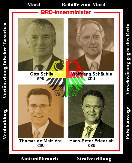 Fortsetzung Samstag, der 14. Juli 2012 ... Die Übernahme von Zahlungs- und Bürgschaftsverpflichtungen sei zulässig. "Die Regierung ist in schwierigen Lagen berechtigt, sehr hohe Risiken einzugehen. Das Grundgesetz verbietet nicht die Staatspleite." Ende Längeres Zitat ![]() Inflation durch die europäische Einigung - verfassungswidrig. Staatspleite durch die europäische Einigung - verfassungsgemäß. Schon eine bemerkenswerte "Verfassung", dieses "Grundgesetz". Das zu verstehen, ist was für die Druiden der sozialdemokratischen Herrschaft. Herzog war auch mal Präsident des BRD-"Verfassung"sgerichts. ![]() Sonntag, der 15. Juli 2012 Anfang Längeres Zitat KAUDER: ... Der Euro ist stabil, die Spareinlagen der Bürger sind nicht angegriffen worden, und Deutschland steht wirtschaftlich hervorragend da. Das zeigt mir: Wir haben alles richtig gemacht. Ende Längeres Zitat ![]() Die autistische Reaktion eines BRD-Staatsfunktionärs, der sich für unangreifbar hält. Nun, die Propagandabühne der BRD gehört Kauder & Co. ![]() Anfang Längeres Zitat KAUDER: Ich bin sehr dafür, dass die Bundestagwahl im September 2013 stattfindet ... WELT AM SONNTAG: Was wird das für ein Bundestagswahlkampf: im Schlafwagenstil wie 2009? KAUDER: Ich wünsche mir einen Wahlkampf, in dem wir den Bürgern erklären, wie es weitergehen soll in Europa. Für krawallige Auseinandersetzungen haben die Menschen kein Verständnis ... Ende Längeres Zitat ![]() Es wird Zeit, daß der Bundeswahlleiter - oder wer immer sonst im BRD-System sich zuständig fühlt - klarstellt, welche Regularien bei der nächsten Bundestagswahl für Einzelbewerber gelten. ![]() Anfang Längeres Zitat KAUDER: ... Die CDU war ... nie eine konservative Partei, sondern immer eine Volkspartei, unideologisch und dem einzelnen Menschen zugewandt. Unser Leitfaden ist das christliche Menschenbild. Ende Längeres Zitat ![]() Bei "der Bundeskanzlerin" klingt das so: "Mal bin ich liberal, mal bin ich konservativ, mal bin ich christlich-sozial – und das macht die CDU aus." ![]() Anfang Längeres Zitat KAUDER: ... Wir Menschen sollten uns ... immer bewusst sein, dass wir Lösungen nicht allein aus eigener Kraft hinbekommen. Das Allermeiste im Leben ist von Gott geschenkt. Ende Längeres Zitat ![]() Eskapistisches "bürgerliches" Geschwätz. Und was ist nicht "von Gott geschenkt"? ![]() Montag, der 16. Juli 2012 Anfang Längeres Zitat Der Versuch, die Euro-Schuldenkrise mit immer mehr Geld zu lösen, sei ... erkennbar gescheitert. "Unser Problem ist nicht, dass zu wenig Geld im System ist, sondern dass es zu wenig Regeln gibt." Wenn überhaupt, sei eher hinzunehmen, dass die Erwartungen der Märkte durch die deutsche Rechtsordnung enttäuscht würden, "als umgekehrt unsere Rechtsordnung durch die Verselbstständigung der Märkte". Ende Längeres Zitat ![]() Ohne mir die Meinung von Herrn Lammert zueigen zu machen ("unsere Rechtsordnung", "Verselbstständugung der Märkte") - ist natürlich nichts dagegen einzuwenden, wenn BRD-Politiker auch mal hier oder da zur Einsicht kommen. Aber das ist nicht der Punkt. Der Punkt ist, daß es ganz in ihrem Belieben und ganz in ihrer eigenen Macht steht, ob sie zur Einsicht kommen oder nicht, und wenn ja, wann. Gleichviel ob sie zur Einsicht kommen oder nicht, und wenn ja, wann - ihres Amtes sind sie sich immer sicher. Was wir aber brauchen ist ein System, bei dem die Lammert und Co. vom Volk aus ihren Ämtern entfernt werden können lange bevor sie zur Einsicht gekommen sind und bevor sie Tatsachen geschaffen haben, mit denen das Volk schon entsprechend lange nicht einverstanden ist. Das System nennt man Demokratie. Gäbe es in Deutschland Demokratie, gäbe es keinen Euro, und es gäbe nicht den Schaden, der durch den Euro für die Menschen entstanden ist, die ihn zu tragen haben. Elende sozialdemokratische Manipulationsherrschaft. ![]() •II• Aus einem WELT-ONLINE-Bericht mit der Überschrift "Euro-Rettungsschirm / NPD schreibt Hass-Brief an alle Abgeordneten": Anfang Längeres Zitat In einem Brief an die Bundestagsabgeordneten schreibt NPD-Chef Holger Apfel, die Parlamentarier hätten sich "den Titel 'Totengräber von Demokratie, Rechtsstaatlichkeit und Selbstbestimmung' redlich verdient", berichtete sueddeutsche.de unter Berufung auf das ihr vorliegende Schreiben. Sie hätten mit ihrer Zustimmung die "Einkommen und Ersparnisse der Deutschen letztlich zur Plünderung" freigegeben. ... Apfel ließ jedem Brief eine "Todesbescheinigung" beilegen. Als "Name des Patienten" wird dort "Demokratie/Rechtsstaatlichkeit in der BRD" angegeben. Als "Todesursache" wird "Staatsstreich durch das ESM-Ermächtigungsgesetz" vermerkt, wie sueddeutsche.de berichtete. Weiter schreibt Apfel: "Mokieren Sie sich in Zukunft also bitte nicht mehr über diejenigen Reichstagsabgeordneten, die für das Ermächtigungsgesetz vom 24. März 1933 gestimmt haben." Ende Längeres Zitat ![]()