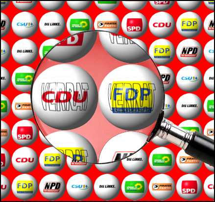 Sonntag, der 09. September 2012 Anfang Längeres Zitat Die Tendenz zur Suspendierung demokratischer Verfahren ist nicht mehr zu übersehen, seit in mindestens zwei Staaten der Währungsunion, Griechenland und Italien, zwei Regierungen gehen mussten, nicht weil der jeweilige Souverän es so wollte, sondern weil es die EU erzwang. Das ist nur eines von vielen Beispielen dafür, wie die Furie der Finanzkrise die Aushebelung des demokratischen Verfahren bewirkt. Längst sind die nationalen Parlamente durch das Tempo, in dem sie über Rettungsmaßnahmen und die damit verbundenen riesigen Summen zu entscheiden haben, fast rettungslos überfordert. Und zum Entzug von Kompetenz kommt der bequeme, freiwillige Verzicht hinzu, zu dem man sich durch die EZB treiben lassen kann. Angela Merkel hat der EZB-Entscheidung vom Donnerstag wohl auch deswegen zustimmen können, weil sie darin eine willkommene Entlastung kommen sah. Denn nun muss sie nicht mehr den steinigen und gefahrvollen Weg gehen, sich Rettungsprogramme von einem immer unwilliger werdenden Parlament bewilligen lassen zu müssen ... Jetzt kann sie, sich entschuldend, darauf verweisen, dass die Alternativlosigkeit nun nicht mehr von ihr, sondern von der großen EZB kommt. Das Direktorium hat – mit besten Absichten, gewiss – gesiegt. Die größere Gefahr, die sich hinter der beschriebenen der Entdemokratisierung verbirgt, ist eine ganz fundamentale: die Gefahr, dass die Staaten Europas wie die EU ihren republikanischen Charakter verlieren. Am Ende könnte es darauf hinauslaufen, dass nicht mehr Verfahren und Recht regieren, sondern kluge, aber nicht legitimierte Experten. Es liegt übrigens auf der Hand, dass damit das Vereinigte Königreich, das doch eine Brücke nach Übersee sein könnte und sollte, der EU noch weiter entfremdet wird. Ende Längeres Zitat ![]() Hier wird Sorge um die Demokratie geäußert. Zu einem Zeitpunkt, wo einmal nicht die deutschen Obermanipulanten sagen, wo es langgeht, sondern andere. Das ist wenig überzeugend. Es mag ja Staatsfreunde geben, für die das Gebaren der Polit-Klasse der BRD per se demokratisch ist. Für andere hat die Sorge um die Demokratie einen ganz anderen Urprung, nämlich da wo es um das politische System geht, das beispielsweise die Einführung eines Euro über die Köpfe der Bevölkerung hinweg ermöglicht. Die Rede ist vom Parteienstaatsystem, das von interessierter Seite als "repräsentative Demokratie" und als "westliche Demokratie" ausgegeben wird.